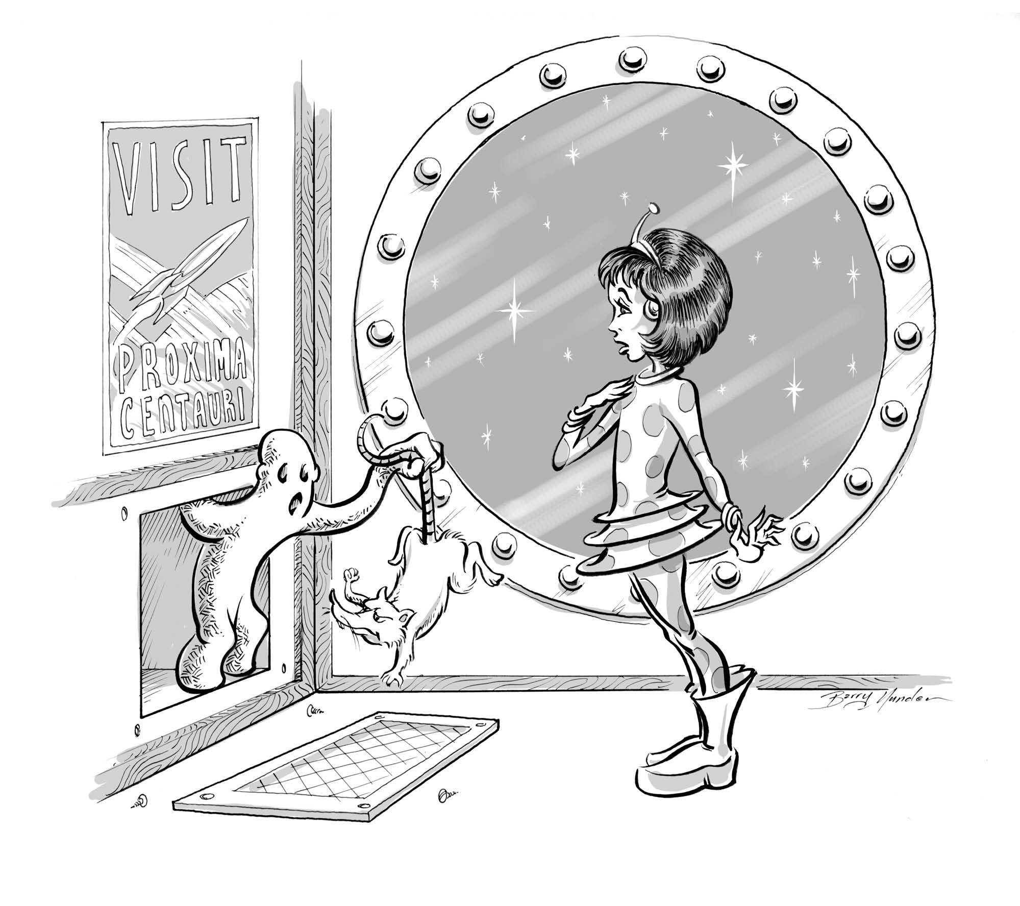 “Mr. and Mrs. Lau,” the captain said, drumming his fingers on the smooth surface of the desk. “Your daughter has caused a great deal of trouble for Blueshift Cruise by bringing contraband creatures onto the ship. There are reasons that pets like your daughter’s rat and this exotic alien creature that wrecked my kitchen are forbidden! But she apparently thinks rules only apply to other people.”