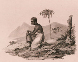 "Then, I ran into a troop of Portuguese soldiers who were on patrol. They captured me. They beat me and put me in shackles. They were marching from village to village, picking up slaves to sell at the coast. I remember the beatings. I think that I nearly starved. We got some water in the morning, and a crust of bread and some water in the evening. At night we were shackled to each other so we could not move. We stank so badly. We heard the lions in the brush, and we prayed very hard that they didn't want to eat us.