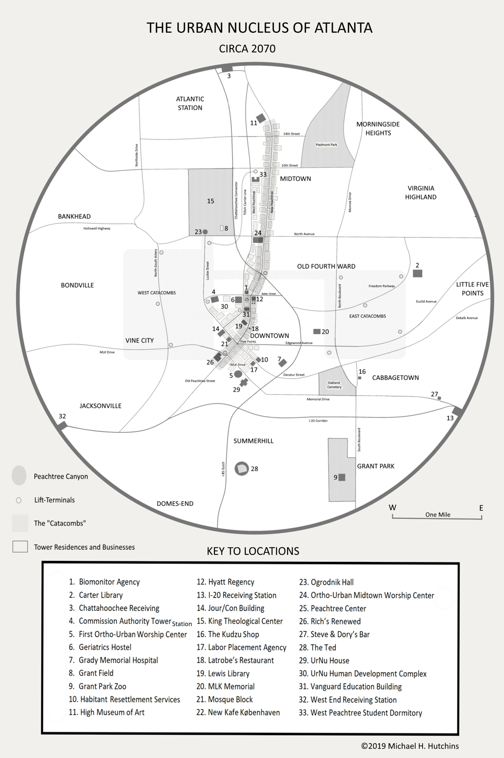 We begin with the fateful meeting of Fiona Bitler and Emory Nett-linger, two people who will ignite the fuse that brings down the Atlanta Urban Nucleus. Emory is a child. Fiona is his teacher. He is white. She is black. He is the son of the man who assassinated her civil-rights-activist preacher husband. Their relationship, born in violence and bigotry, will bring change to an alternative Atlanta in desperate need of it.