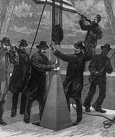 20) Before the cap was installed on top of the Washington Monument, it was put on public display at Tiffany's in New York City. Per the New York Times (November 25, 1884), it was even placed on the floor so that visitors could step over it and say they had stepped "clear over the top of the Washington Monument," which would be the tallest building in the world upon completion later that month. A replica cap was made in the same foundry exactly one hundred years later and exhibited at Tiffany's again the same way! See: http://www.tms.org/pubs/journals/jom/9511/binczewski-9511.html